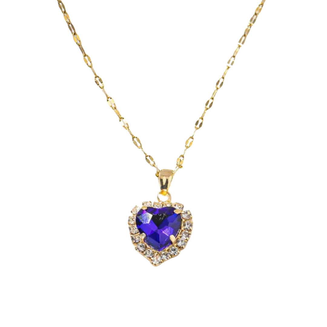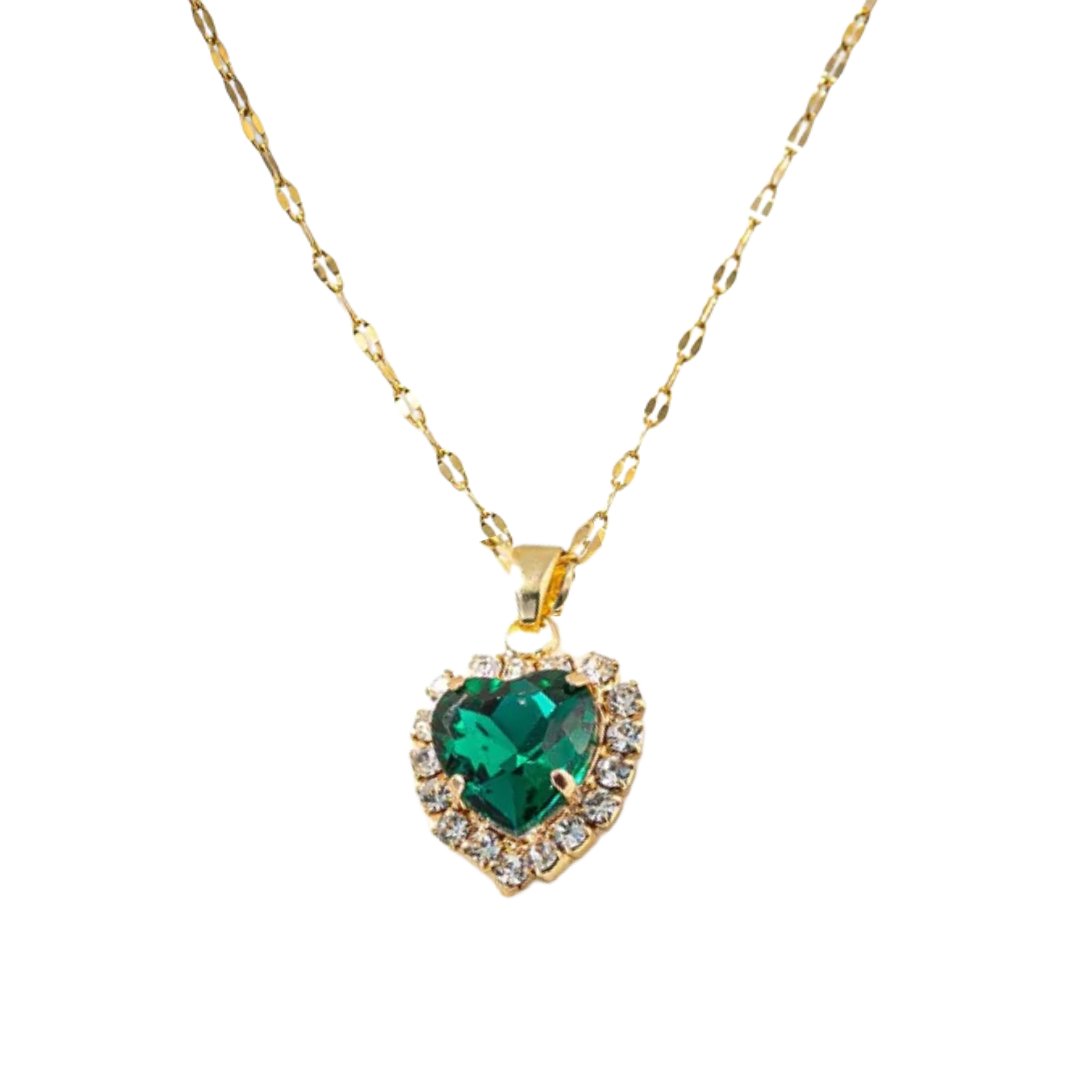 Descripción: Collar elegante con dije de corazón de cristal facetado rodeado de halo de circonitas brillantes en acero inoxidable bañado en oro. Disponible en 12 colores vibrantes que representan cada mes del año, este collar personalizado permite celebrar tu mes de nacimiento o el de un ser querido especial. El diseño de corazón con cristal central facetado y marco de piedras brillantes crea una pieza significativa y hermosa perfecta para regalo o auto compra.